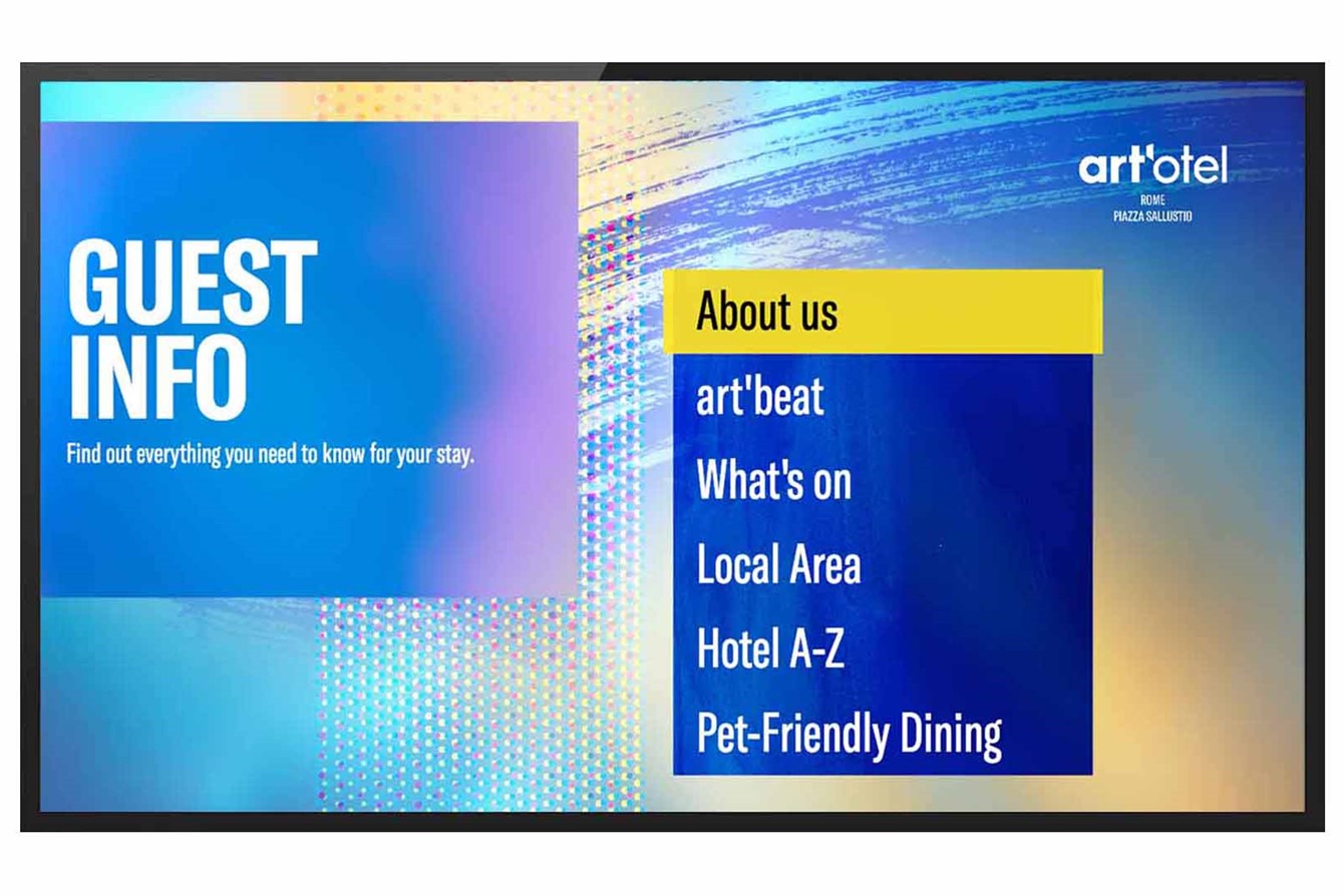 Meanwhile, four Samsung digital signage displays light up the public spaces, serving up news, hotel info, and promotions via Uniguest's signage system.