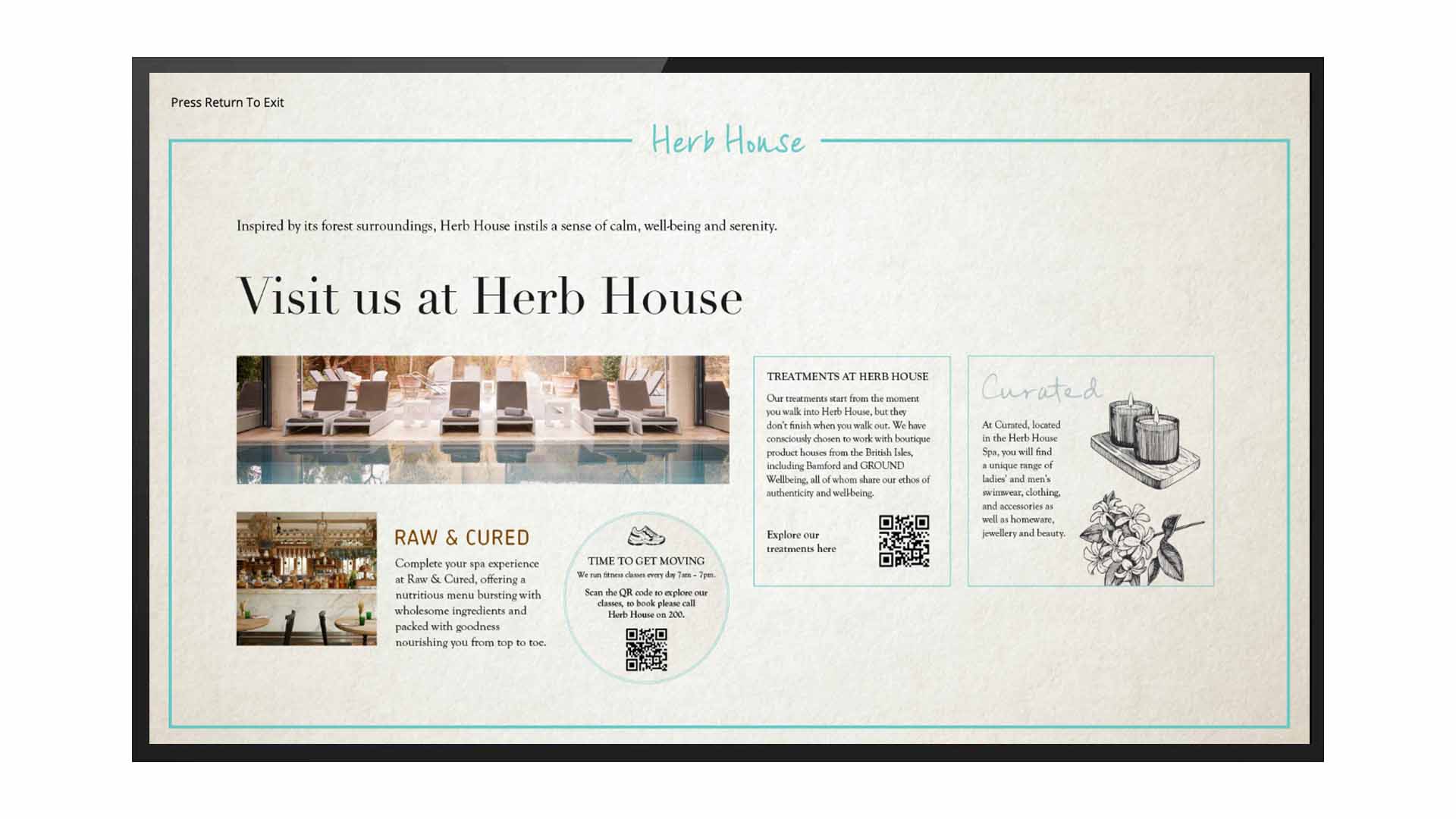 From a single project, Lime Wood gained new hardware, a fully operational headend, a modern content platform, a casting solution, PMS integration, and the ongoing support infrastructure to keep it all running. Technology at a hotel like this must earn its place. It cannot impose. It must work first time, every time — and disappear into the background the moment it has done its job.
