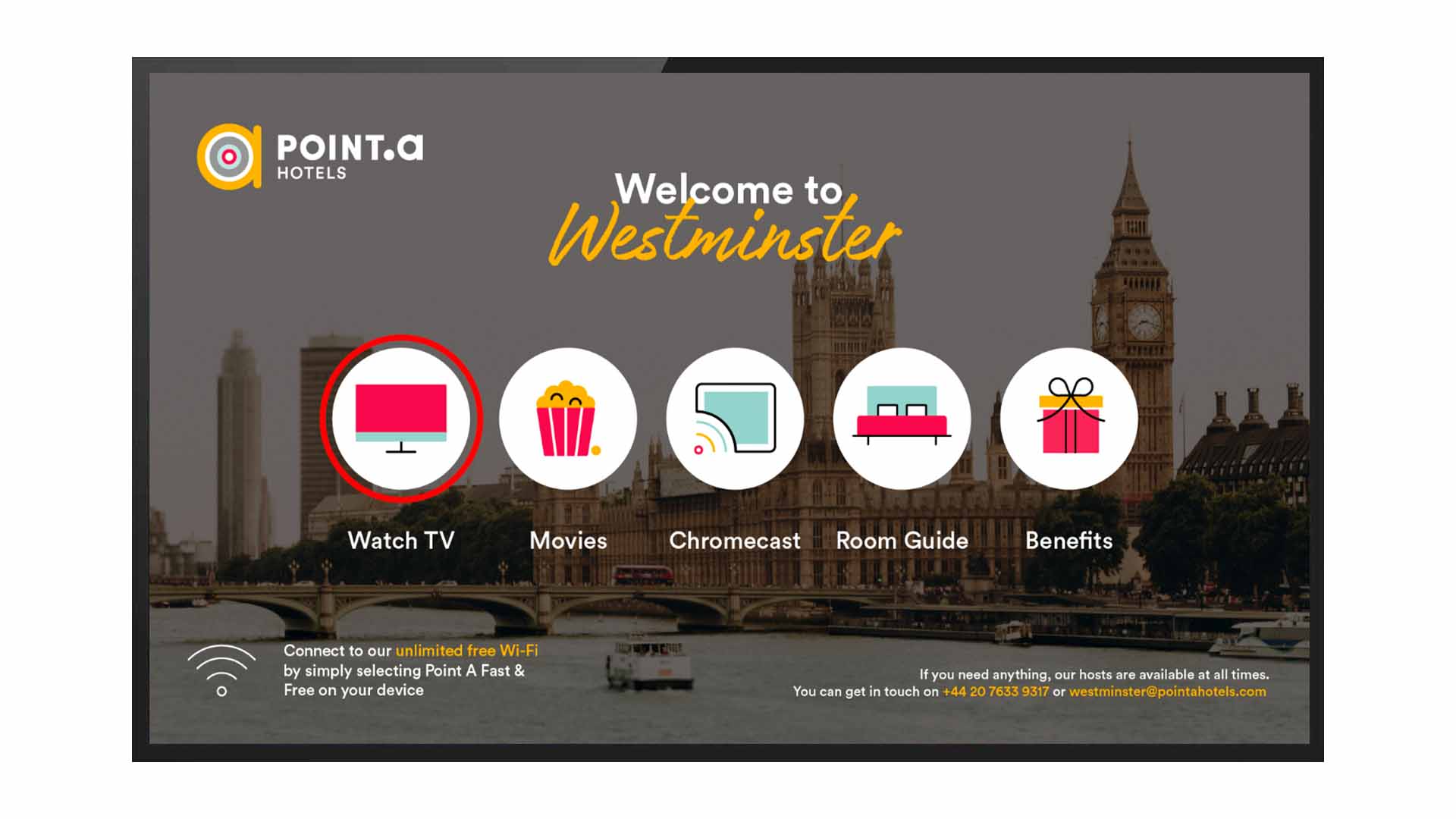 The result is a clean, modern in-room entertainment experience that aligns closely with the Point A brand: simple, fast, and dependable.