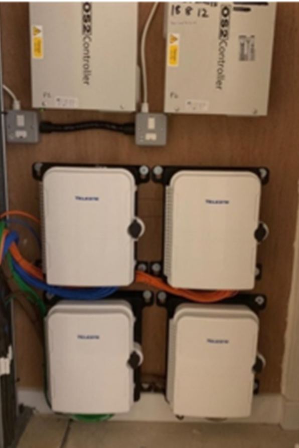 Cables were terminated and spliced into discrete point of entry boxes (POE) outside each front door. These were positioned, ready for the internet service provider to drill through the back of the POE, directly into each property when the residents takes service. This is implemented using pre-made invisilight fibre cables (which won’t be visible in flat’s communal areas).