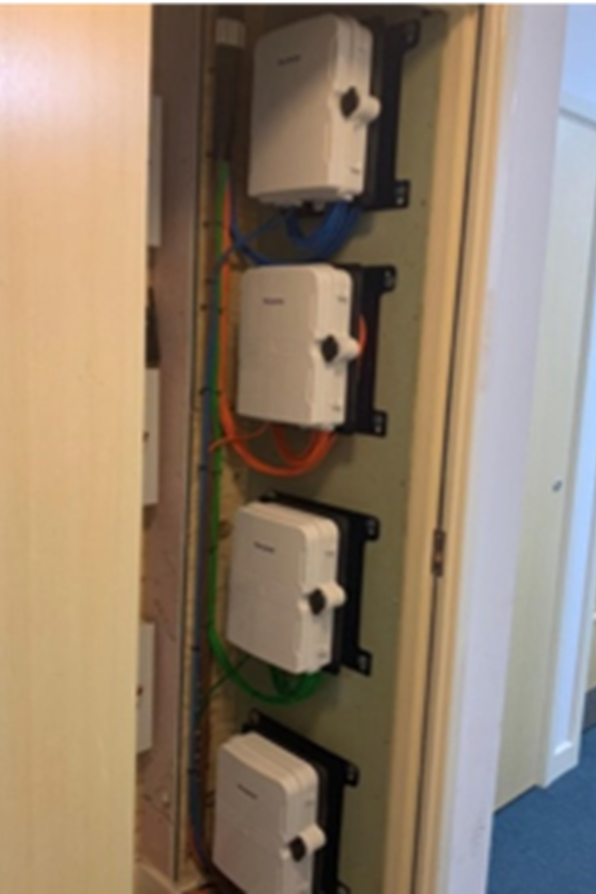 Due to limited space, we were not able to install aggregation cabinets to house the ISP cabinet; however, the flexibility of the 4 Fibre solution enabled us to make the best use of the space available by careful placement of the 4 ISP cabinets (see below photos).